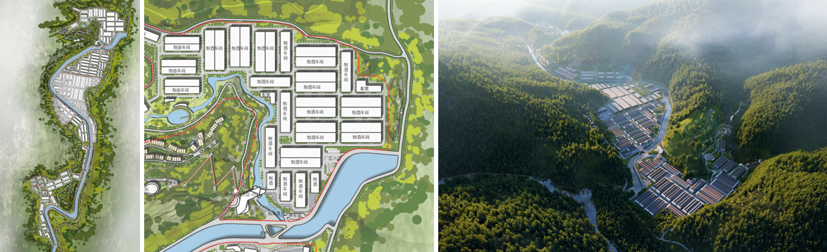 “NG大舞台酒赤水酒谷”位于赤水河畔,同民河水串联各地块,被南北向走势的山体包围,呈带状布局。周围山体植被丰富,云雾袅绕,酒谷作为点缀,与周边极美的自然环境融为一体。酒谷充分利用地形地貌,在平坦处设置厂房,较陡处设置配套功能,最大化土地价值,合理利用土地,与周围自然环境和谐统一,创造生产与自然环境完美结合的生态酒谷。